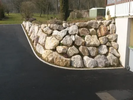 Dans les espaces plus petits, un mur de soutènement en parpaings chainés ou banchés est recommandé car plus compact. Pour des espaces plus dégagés, une solution en enrochement participera à l’aménagement de vos espaces extérieurs et leur donneront un aspect plus paysager. Ils pourront être plantés en massifs ou végétalisés en rocailles.